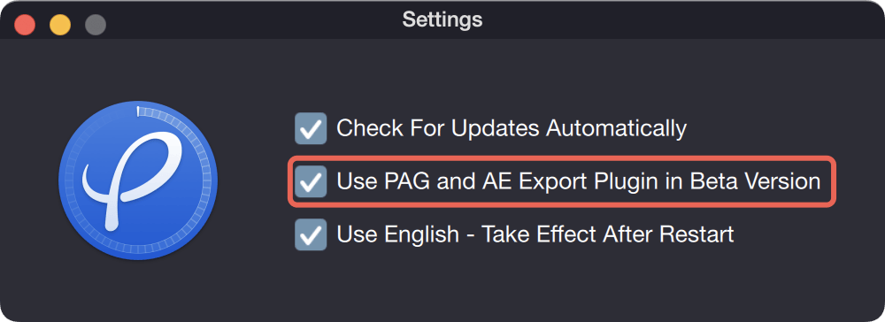- If "Use Beta version of PAG and AE export tools" is checked, the update check will look for both Beta and Stable versions and update to the one with the highest version number.